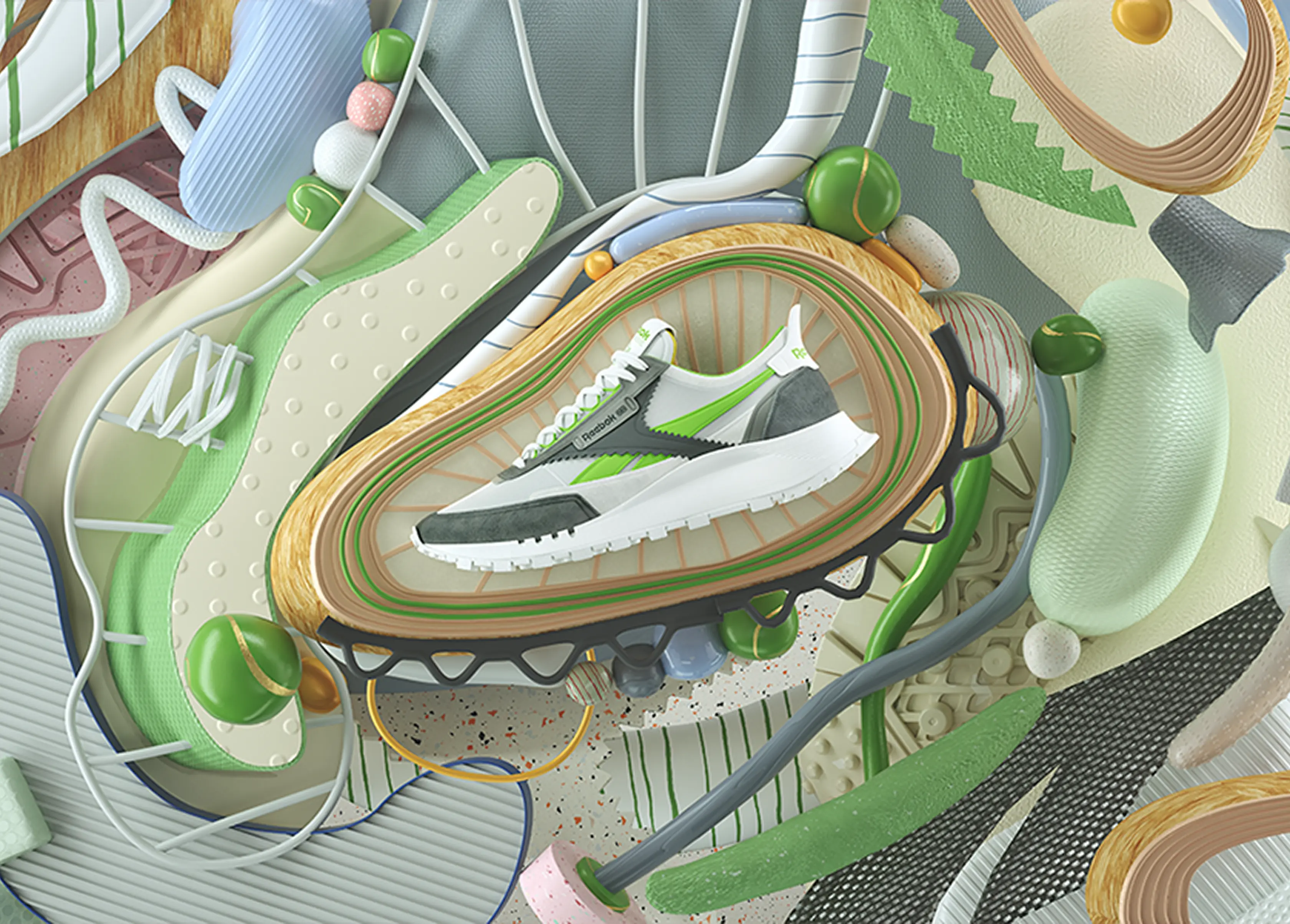 We focused on materials as the core storytelling unit. Working closely with Reebok, we identified the key elements driving this shift and developed a visual language that gave each material its own presence and meaning.